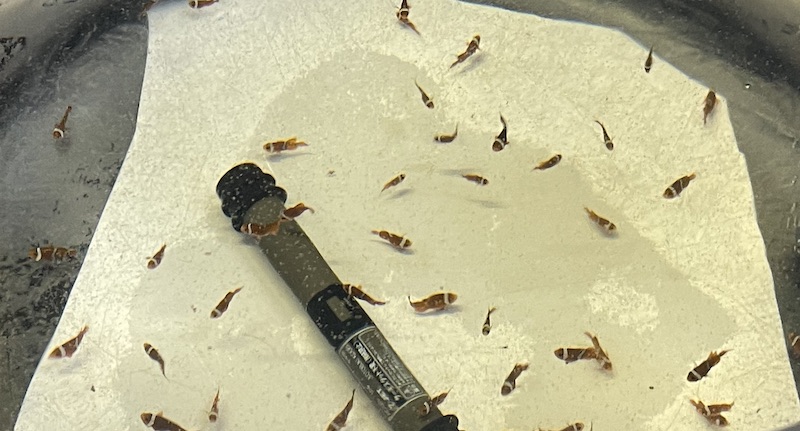 体の白色帯の縁に黒い線があるところから2種は区別できると私は思っていましたが、カクレクマノミにも細い線があることがあり、また、クラウンアネモネフィッシュについても黒い線がとても細い個体がいるそうです。
