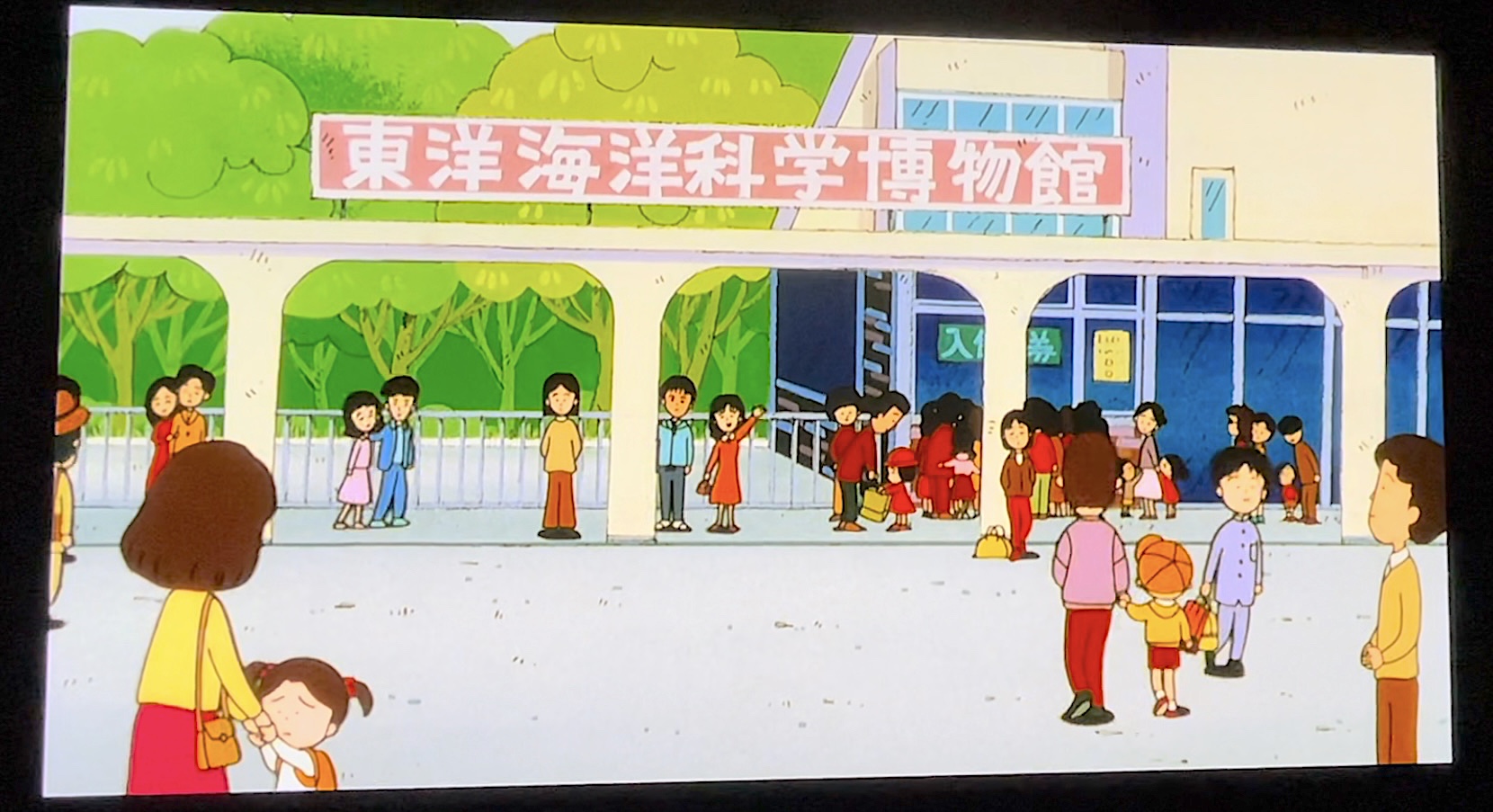 ちびまる子ちゃんが絵描きのお姉さんと行ったのが東海大学海洋科学博物館だったのです! 外観の建物も、大水槽もそっくりに描かれていて、30年前のアニメと変わっていませんでした!!