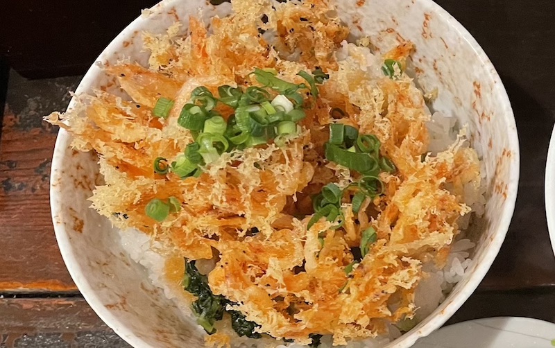 桜えびのかき揚げ丼が特に美味しく、ご飯と桜えびのかき揚げの間に大根おろしが入っていて、さっぱりとした口触りでご飯が進みました。