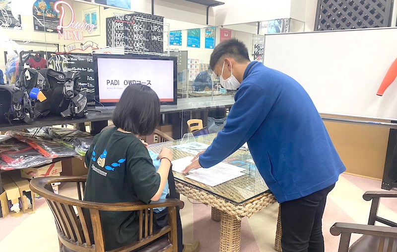 テストで私が最も苦戦したところは「ハンドシグナル」のところです。学科講習はダイビング講習の前に行うため、どのハンドシグナルどういうときに使うのか実感が湧かず、覚えることが大変でした。