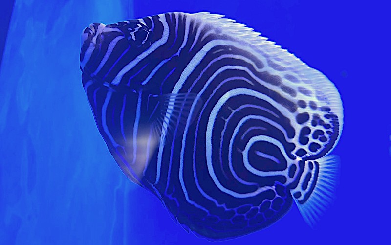 「タテジマキンチャクダイ」の幼魚である「ウズマキヤッコ」は幼魚と成魚では身体の模様が大きく異なります。幼魚水族館のウズマキヤッコは体の模様が変わり始めたばかりで、尾びれの方がちょっとだけ黄色くなっていました。