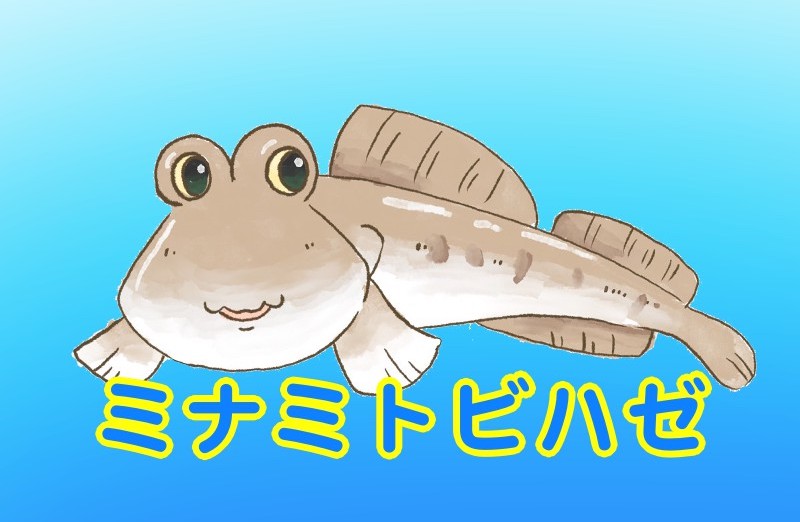 ミナミトビハゼは日本全国の干潟に生息していて、潮が満ちてくるとそれから逃げるように水面を飛び跳ねる様子が名前の由来の魚です。熱帯魚屋さんでは「マッドスキッパー」と呼ばれてもいます。