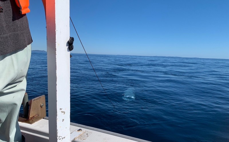 植物プランクトンがいればいるほど海が濁るので、白い円盤が見えなくなる水深が浅くなるそうです。この日は、水深25m位まで白い円盤が見えたので海が澄んでいると教えてくれました。