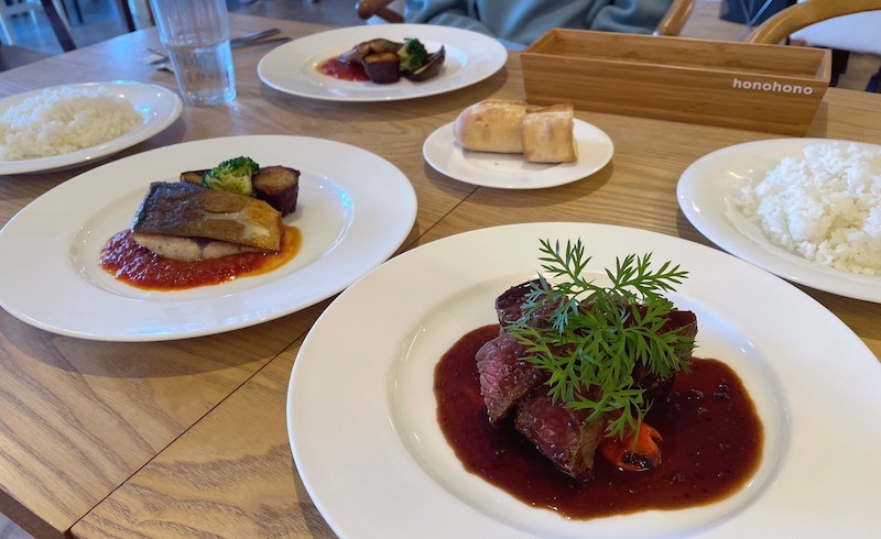 真鶴港の目の前にあるおしゃれなフレンチ料理のお店の「honohono」でランチをしました。お店の中には大きな水槽があり、優雅に泳ぐ熱帯魚たちを見ながら美味しい料理を食べることが出来ます。