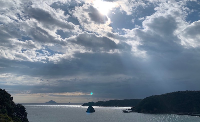 この日はもう11月の終わり。毎年だったらもう寒くて潜れない季節なのですが、今年はなぜか暖かい。上の写真はまだ朝のうちで、神々しい光のカーテン(光芒というそうです)が差していますが、気温は20℃を超えるというので、採集にはぴったり!!