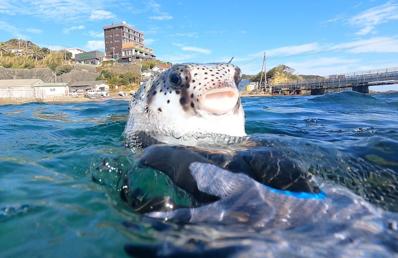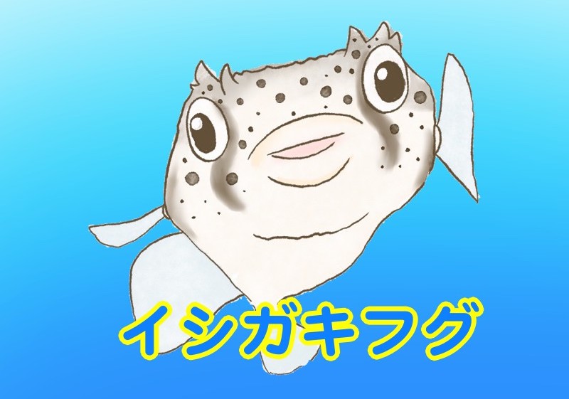 イシガキフグという名前ですが、石垣島以外の海でも見ることができます。イシガキフグは人に懐くので、水族館でも人気のお魚です。また、2021年にさかなクンと東京海洋大学の森田哲郎教授が初めて人工授精に成功したそうです。