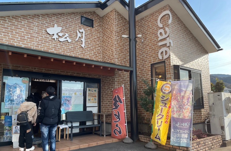 そしてアニメで登場した実際の場所、学校や海岸などを巡礼するのですが、ファンの人も私も必ず外せないカフェがあります。あわしまマリンパークの近くにある「松月cafe」さんです!!