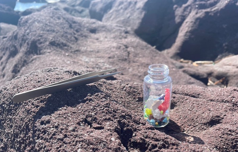 それでも10分ほどで小瓶の半分以上もの量が集まりました。他にも、ペットボトルの蓋やパンの袋など……大きいプラスチックごみは大量に見つかりました。中でもコロナ渦になって急に増えたというゴミ!!