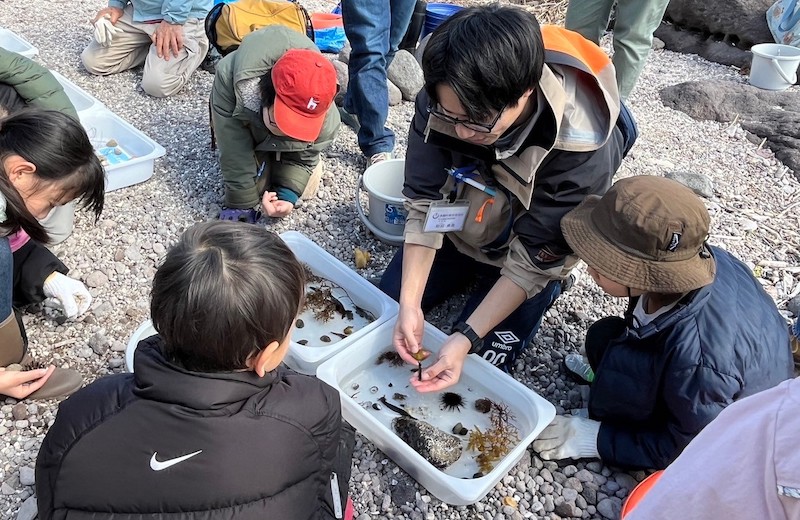 最後に「遠藤貝類博物館」に戻り、体験したビーチコーミングのまとめをしてもらいました。その中で私が気になったのは「磯焼け」です。最近の真鶴の海では「カジメ」という海藻が減少し、魚の住処がなくなってしまいました。
