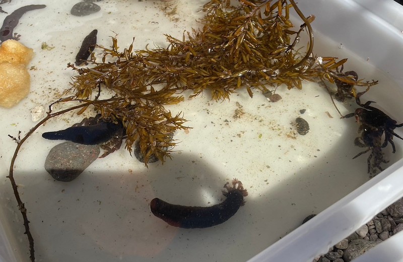 ビーチコーミング中にタイドプールでナマコを見つけました。ナマコの種類に詳しくないので「ディスカバーブルー」の方に聞いてみたところ、「ムラサキクルマナマコ」という名前のナマコだそうです。