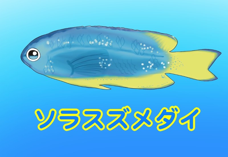 いつも海を覗くと一番最初に見つけることができるソラスズメダイ。夏の漁港などでも「熱帯魚がいる!!」という人の声が聞こえた時には、だいたいこのコたちが群れになって泳いでいます。