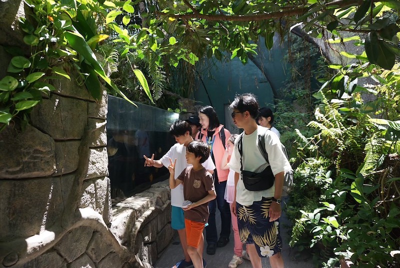 でも水族館自体はとっても綺麗で、エントランスを抜けると一気にジャングルの中入ったような植物園。南国にいるような派手な鳥が飛び回っていて、どこでもドアでいきなりマダガスカルに来ちゃったような錯覚におちいります。