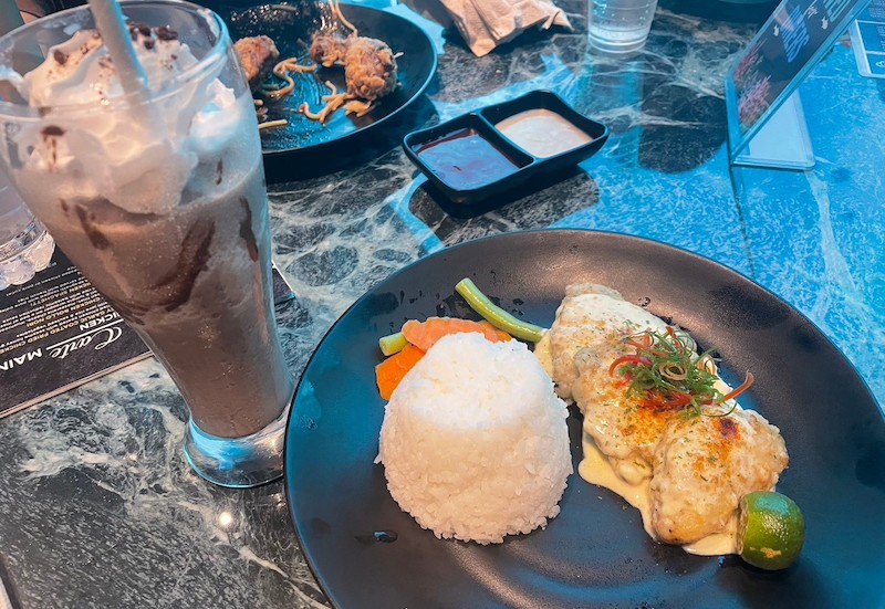 青い色の種類のブダイはフィリピンの市場やスーパーでいつも売っているほど馴染み深いお魚です。勇気を出してブダイのフィレを頼んで食べてみると、癖はなく白身魚のあっさりとした味で美味しかったです。