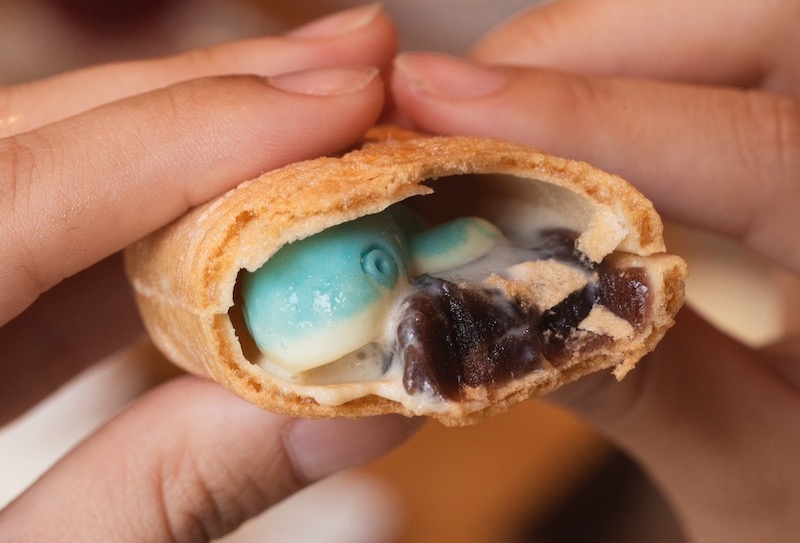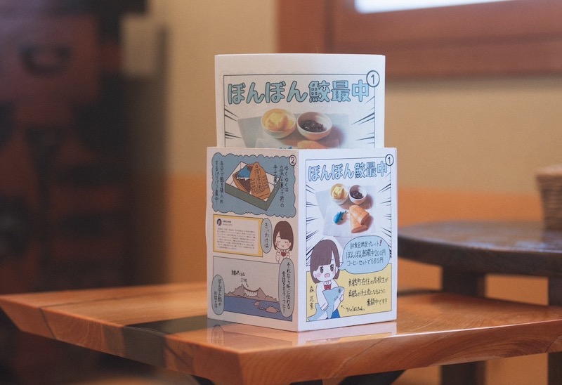 モナカの皮と鮫のチョコを使ったオリジナルデザートを考案して写真に撮ったり、いつか菓子折りになった際の理想のパッケージを製作したり……おかげで「こんなお土産物を目指しているのね」という感想をたくさん頂くことができました。