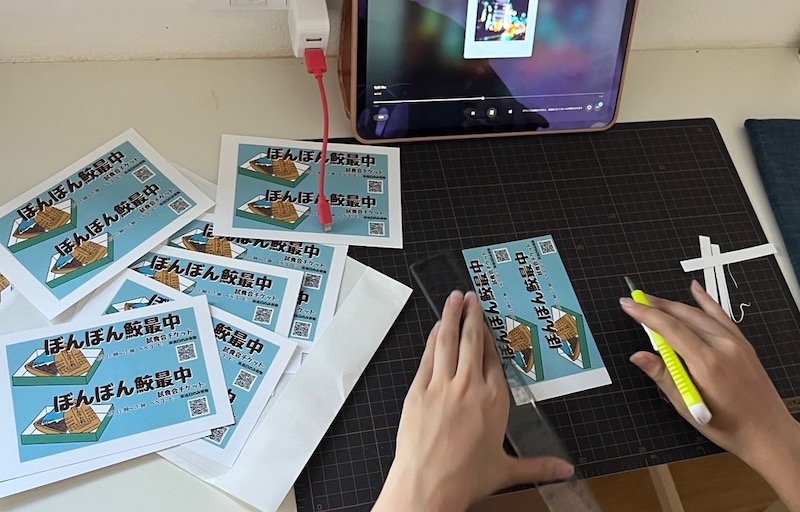 チケットを配ったら、当日に向けて試食会の準備をします。ポスターやチラシ、POPを作ったり、展示スペースを貸してもらえるので、ディスプレイを作ったり……。まるでひとり文化祭の前のようです。